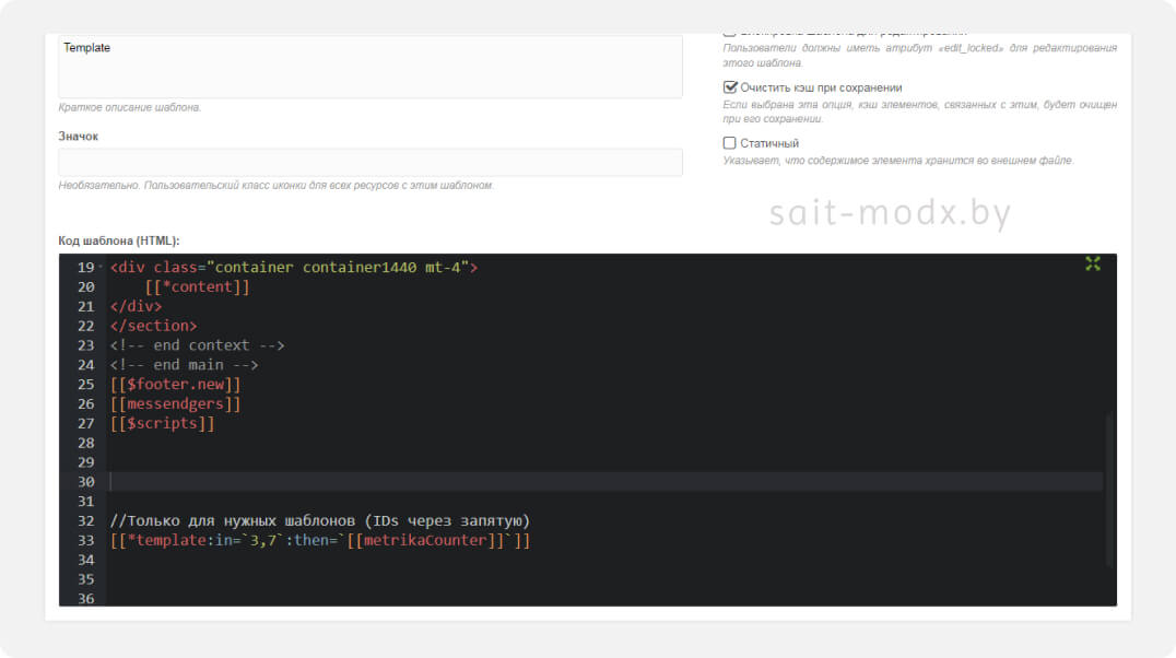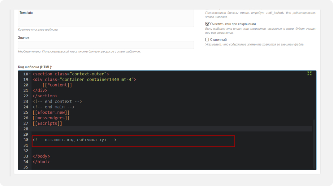 ⚙️ Шаг 2. Подключаем код счётчика в MODX