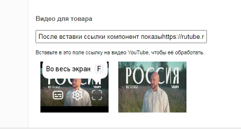 Компонент корректно обрабатывает ссылку ещё на этапе заполнения ресурса: показывает iframe предпросмотра, формирует JSON для TV и помогает избежать ошибок при публикации материалов.