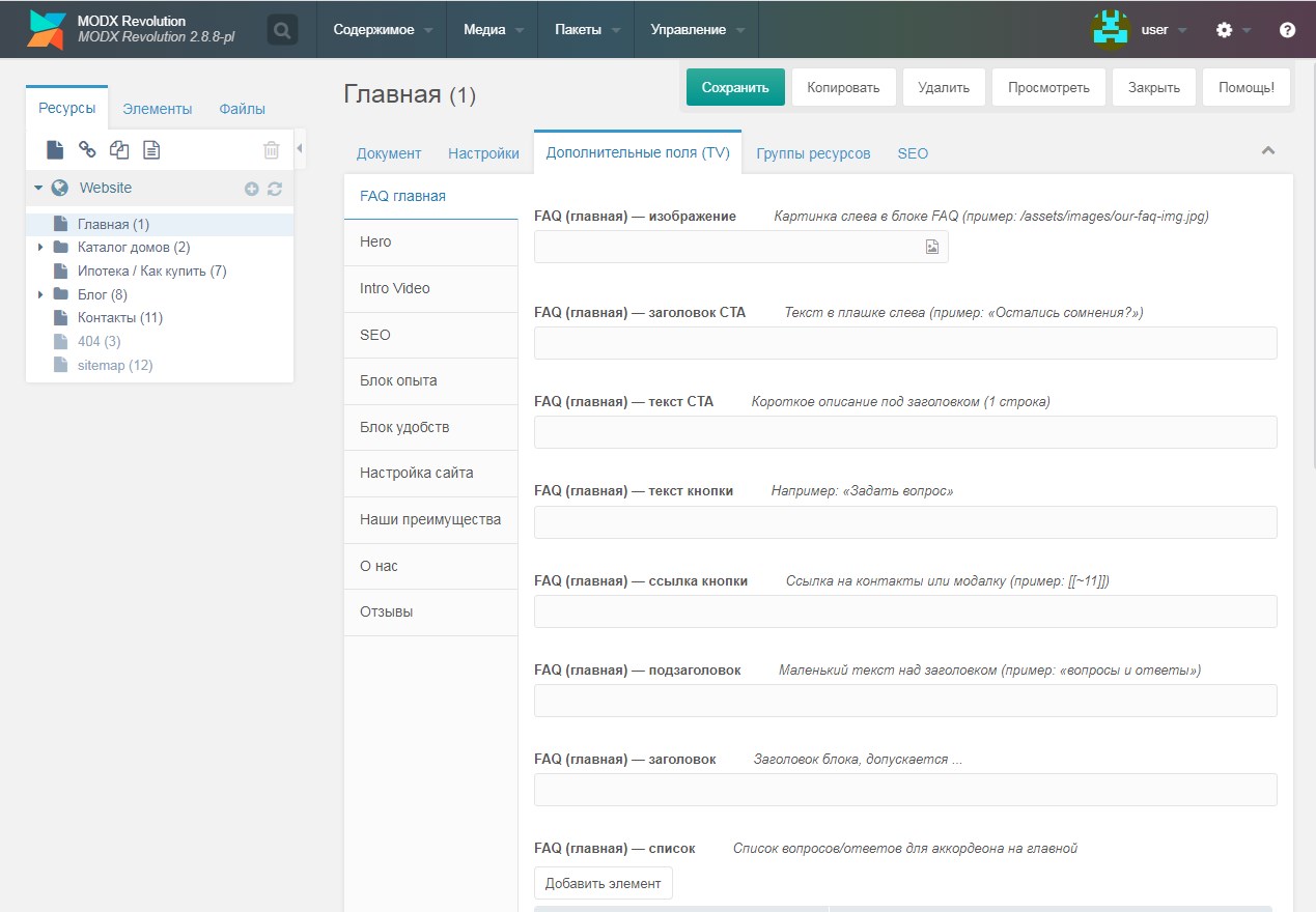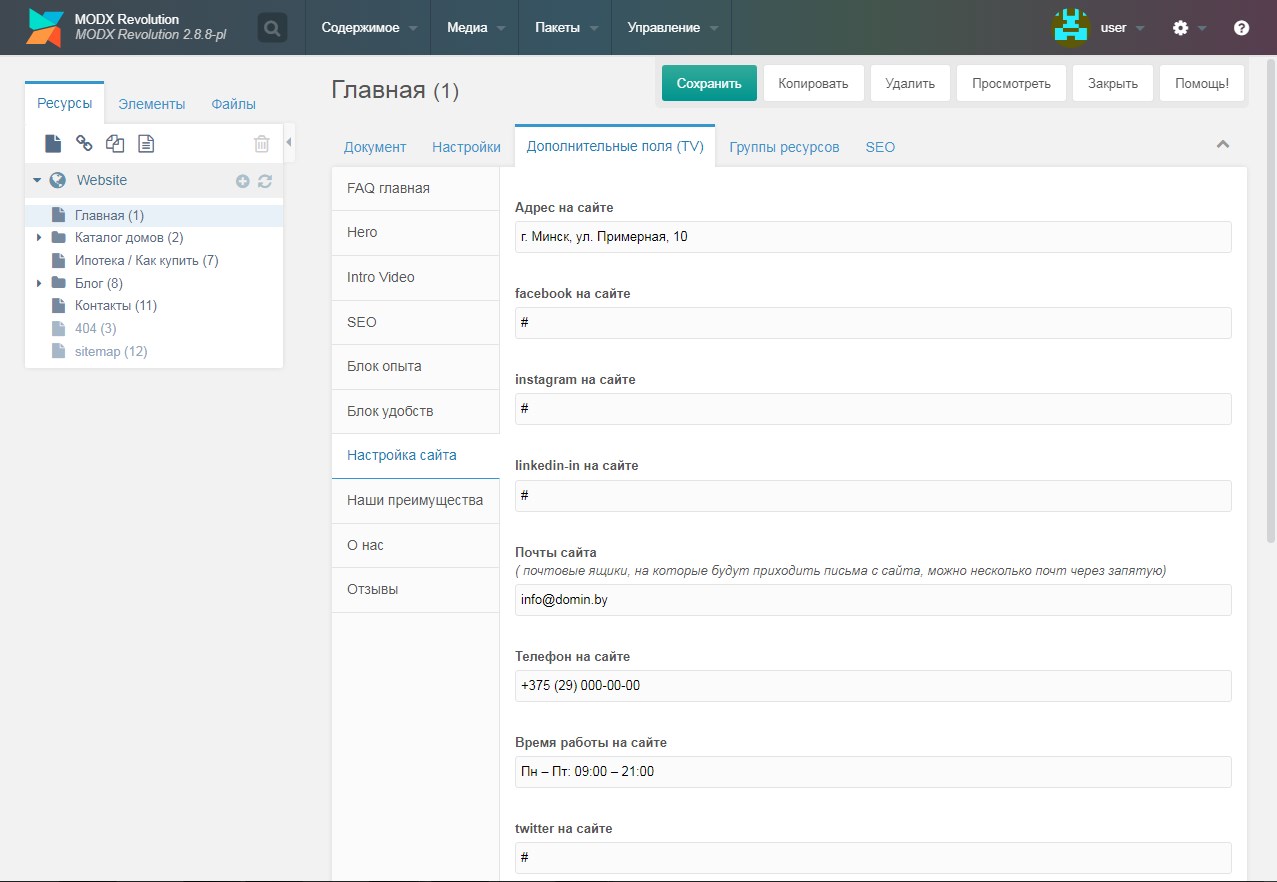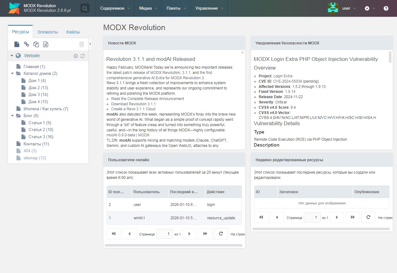 Это не просто набор файлов — это полностью готовый сайт на MODX.