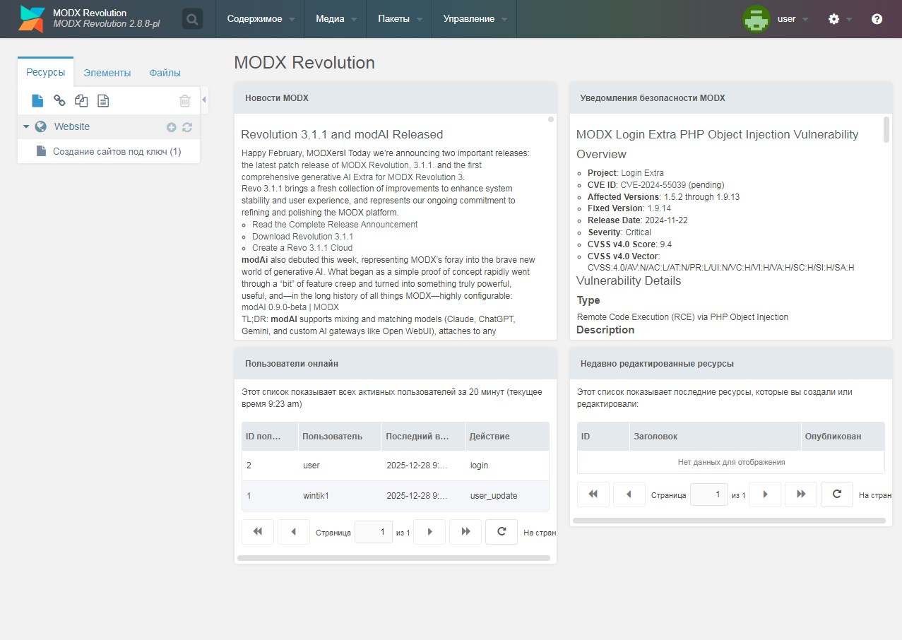 Это не просто набор файлов — это полностью готовый сайт на MODX.